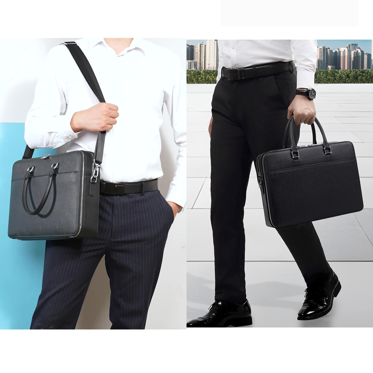 Cặp da bò nam công sở chất liệu da bò Saffiano chống nước, trầy xước đựng máy tính laptop giấy tờ tài liệu A4